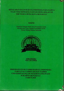 ZINORA, INDI (2025) KESALAHAN EJAAN BAHASA INDONESIA PADA KARYA TULIS TEKS DONGENG FANTASI SISWA KELAS VII SMP NURUL HUDA KOTA BENGKULU. Undergraduate (S1) thesis, UIN Fatmawati Sukarno Bengkulu.