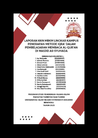 LAPORAN KKN MBKM LINGKAR KAMPUS PENERAPAN METODE IQRA' DALAM PEMBELAJARAN MEMBACA AL-QUR'AN DI MASJID AS-SYUHADA