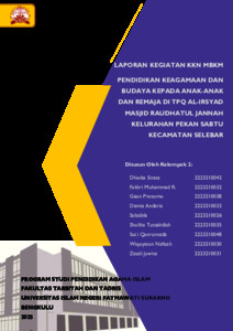 LAPORAN KEGIATAN KKN MBKM PENDIDIKAN KEAGAMAAN DAN BUDAYA KEPADA ANAK-ANAK DAN REMAJA DI TPQ AL-IRSYAD MASJID RAUDHATUL JANNAH KELURAHAN PEKAN SABTU KECAMATAN SELEBAR