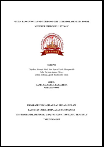 FARAGHITA, VANIA SALSABILA (2025) ETIKA TANGGUNG JAWAB TERHADAP THE OTHER DALAM MEDIA SOSIAL MENURUT EMMANUEL LEVINAS. Undergraduate (S1) thesis, UIN Fatmawati Sukarno Bengkulu.