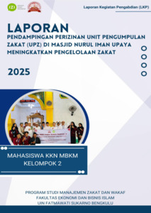Annisa, Annisa and Sari, Umi Meipita and Anggriani, Nia and dkk, dkk (2025) LAPORAN PENDAMPINGAN PERIZINAN UNIT PENGUMPULAN ZAKAT (UPZ) DI MASJID NURUL IMAN UPAYA MENINGKATKAN PENGELOLAAN ZAKAT. Project Report. LPPM UIN Fatmawati Sukarno Bengkulu, Bengkulu. (Submitted)